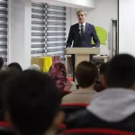 BURSA (İGFA)- Bursa’da Erkek Lisesi’ne yaptığı ziyaret sırasında öğretmenlere duyduğu saygı ve minnettarlığı dile getiren Osmangazi Belediye Başkanı Erkan Aydın, öğretmenlerin yanı sıra okuldaki öğrencilerle bir araya geldi.